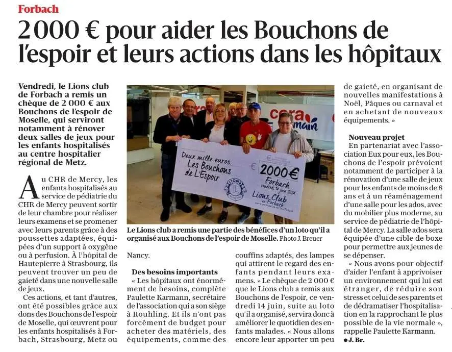Remise officielle du chèque de l'EJEM